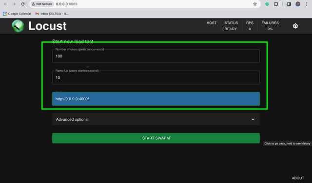 3. Start locust Run locust in the same directory as your locustfile.py from step 2